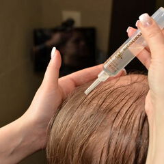 Intensivanwendung mit spezieller Vor- und Nachbehandlung der Kopfhaut, bei der die Stop&Grow-Wirkstoffe besonders effizient in die Kopfhaut eingeschleust werden. Dabei erfolgt zudem eine Entgiftung und Tiefenreinigung der Kopfhaut und die Mikrozirkulation wird aktiviert.
